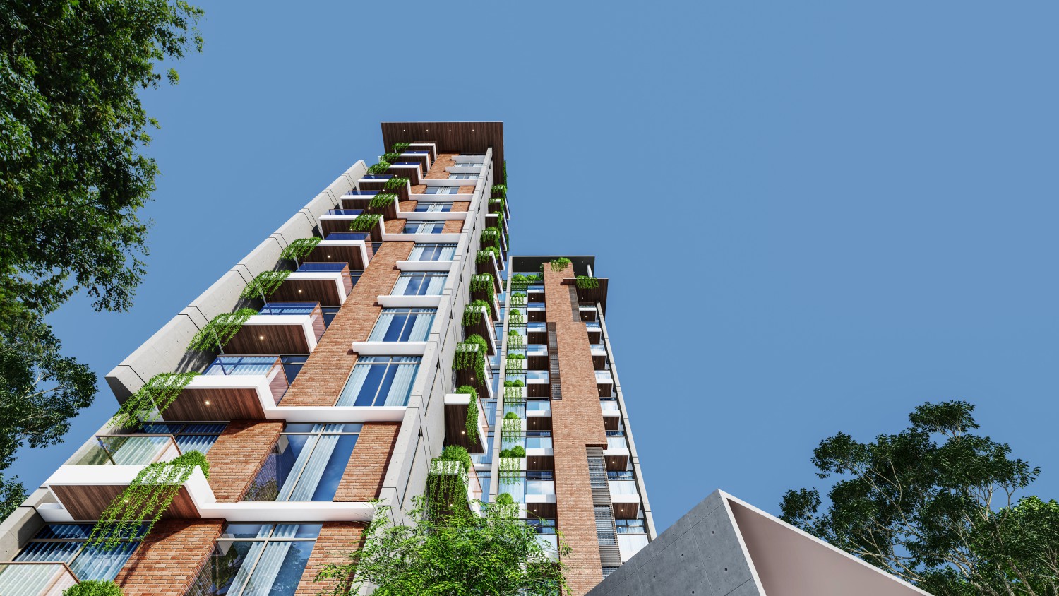 Brief: The building entrances through a grand welcoming entry. Different community facility provided for the users. The swimming pool with a terraced garden roof designed at the top. Prayer space, hall room, office room are placed on the top floors of the building.